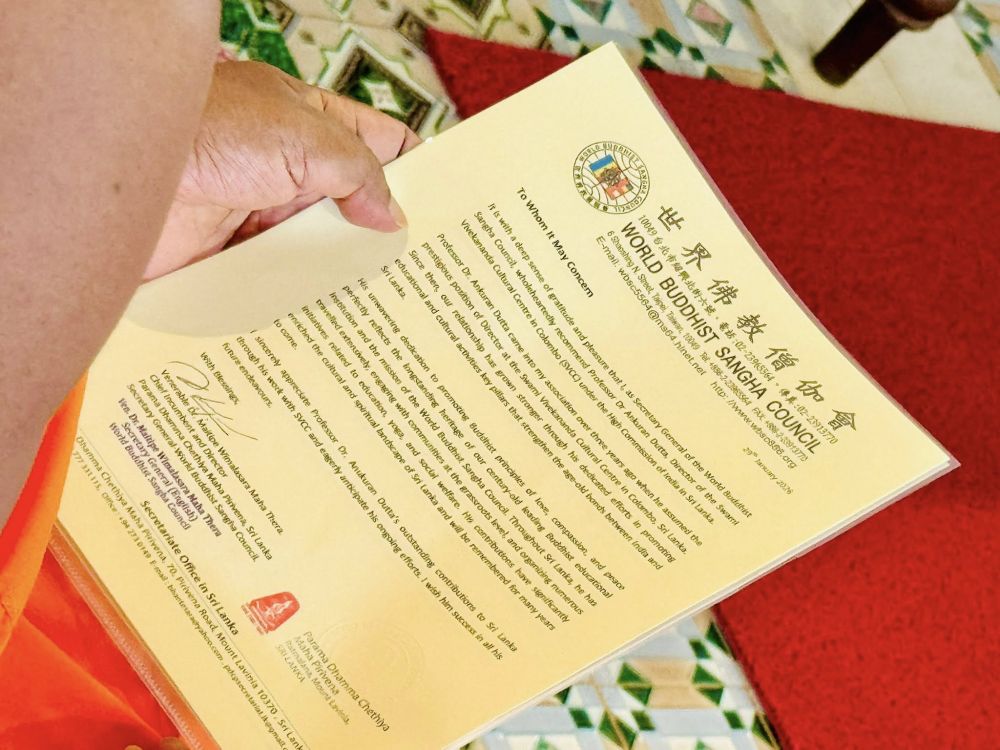 Before concluding his tenure as Director of the Swami Vivekananda Cultural Centre and returning to India, Prof. Ankuran Dutta visited the Ratmalana Parama Dhamma Chethiya Pirivena today (20). During his visit, he received the blessings of the Triple Gem in a solemn and respectful religious ceremony.