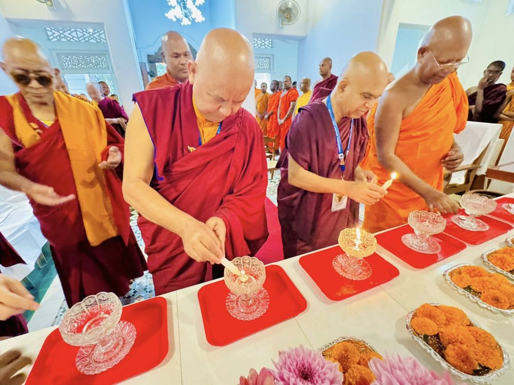 After being warmly received by Most Venerable Dr. Maithipe Vimalasara Thero, the esteemed members of the Maha Sangha who arrived from India engaged in a series of religious observances at the Ratmalana Parama Dhamma Chethiya Maha Piriven Viharasthana.